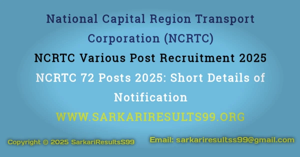 DisclaimerAll information is based on general NCRTC guidelines and past patterns. Verify details on ncrtc.in. Report issues to NCRTC within the specified timeline. SarkariResults99 is not responsible for inaccuracies in external sources. |