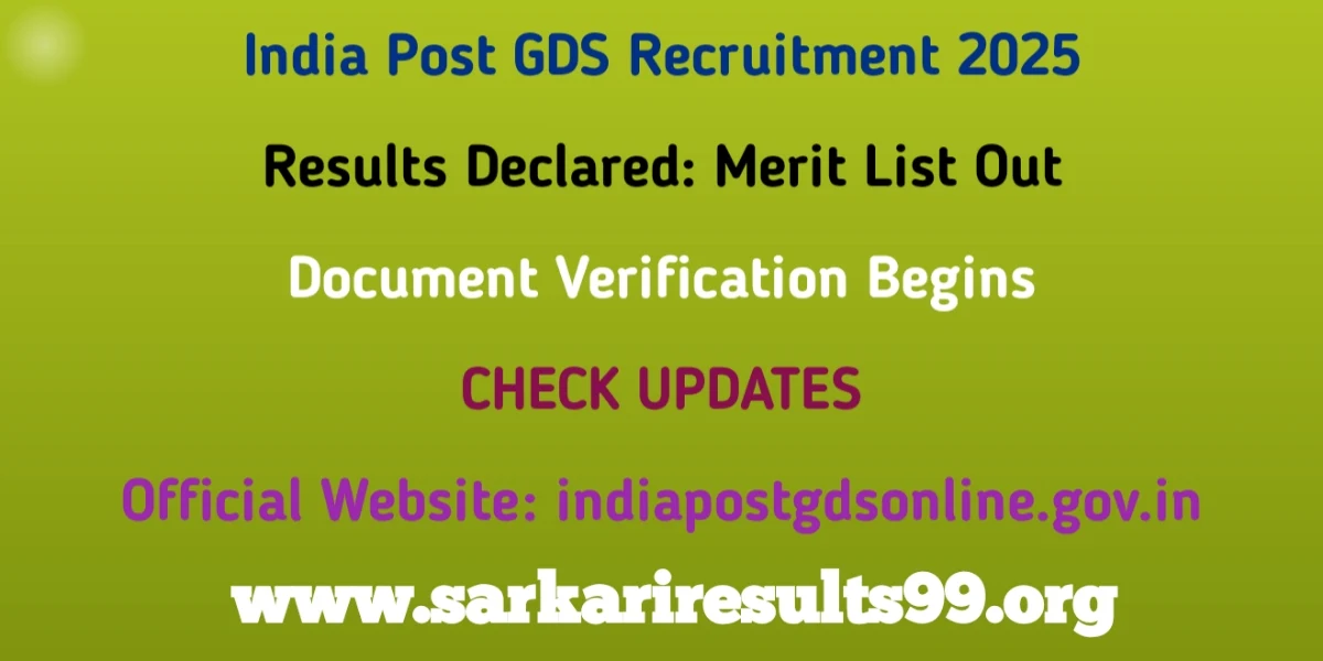 India Post GDS Recruitment 2025Results Declared: Merit List OutDocument Verification BeginsCHECK UPDATESOfficial Website: indiapostgdsonline.gov.in |